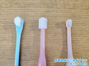 猫達は「プラチナナノ歯ブラシ manmou(幼児用)」「ビバテック 猫 SS サイズ」「オーラバイオブラシ MINI」を使っています。