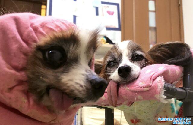 チヨもたみも介護中は足が不自由になったものの介護ハーネスや自作の歩行器で歩き回っていたものの、たみの最後の頃は、ぬいぐるみのようにくたっと四肢を広げて寝そべり立てなくなることも。